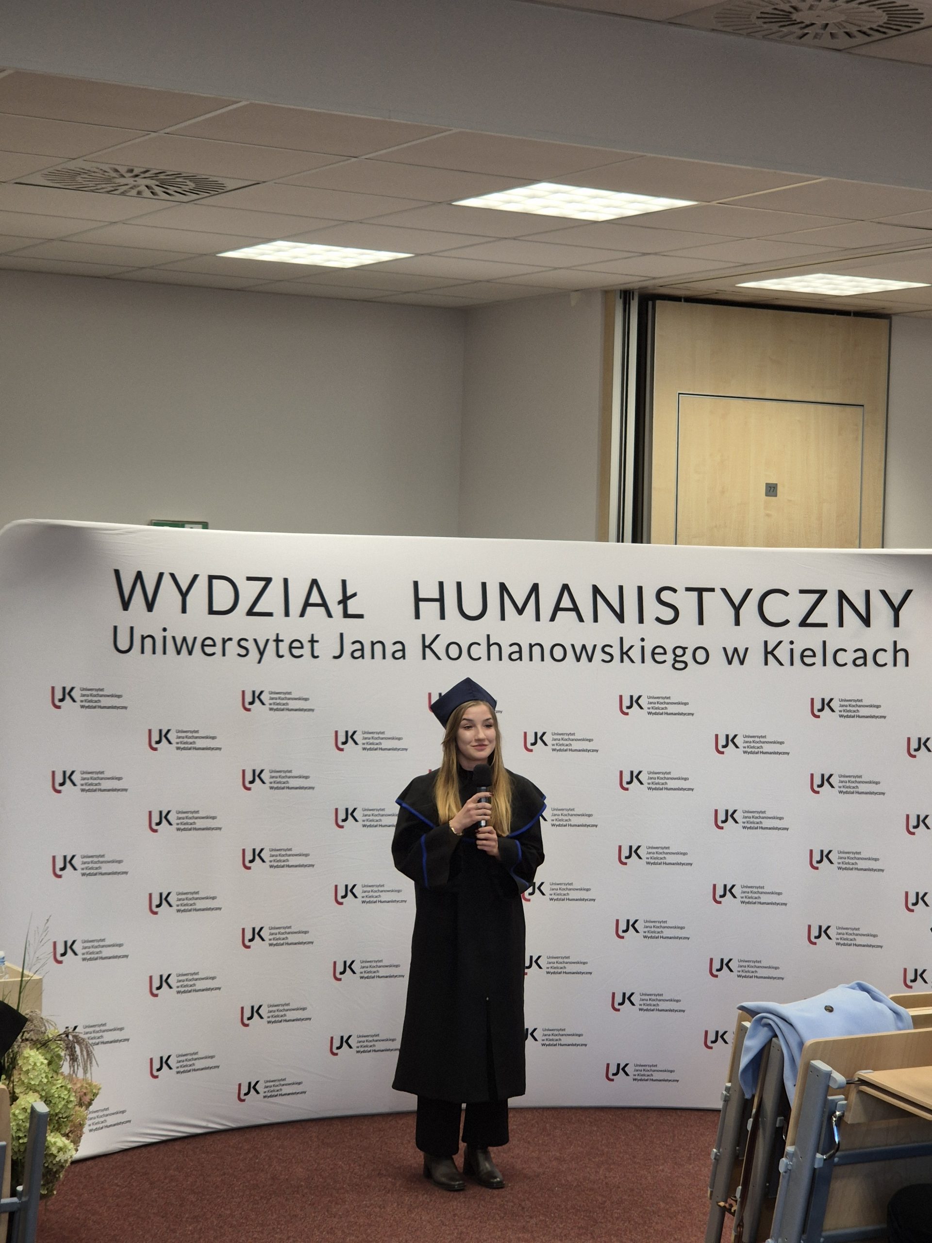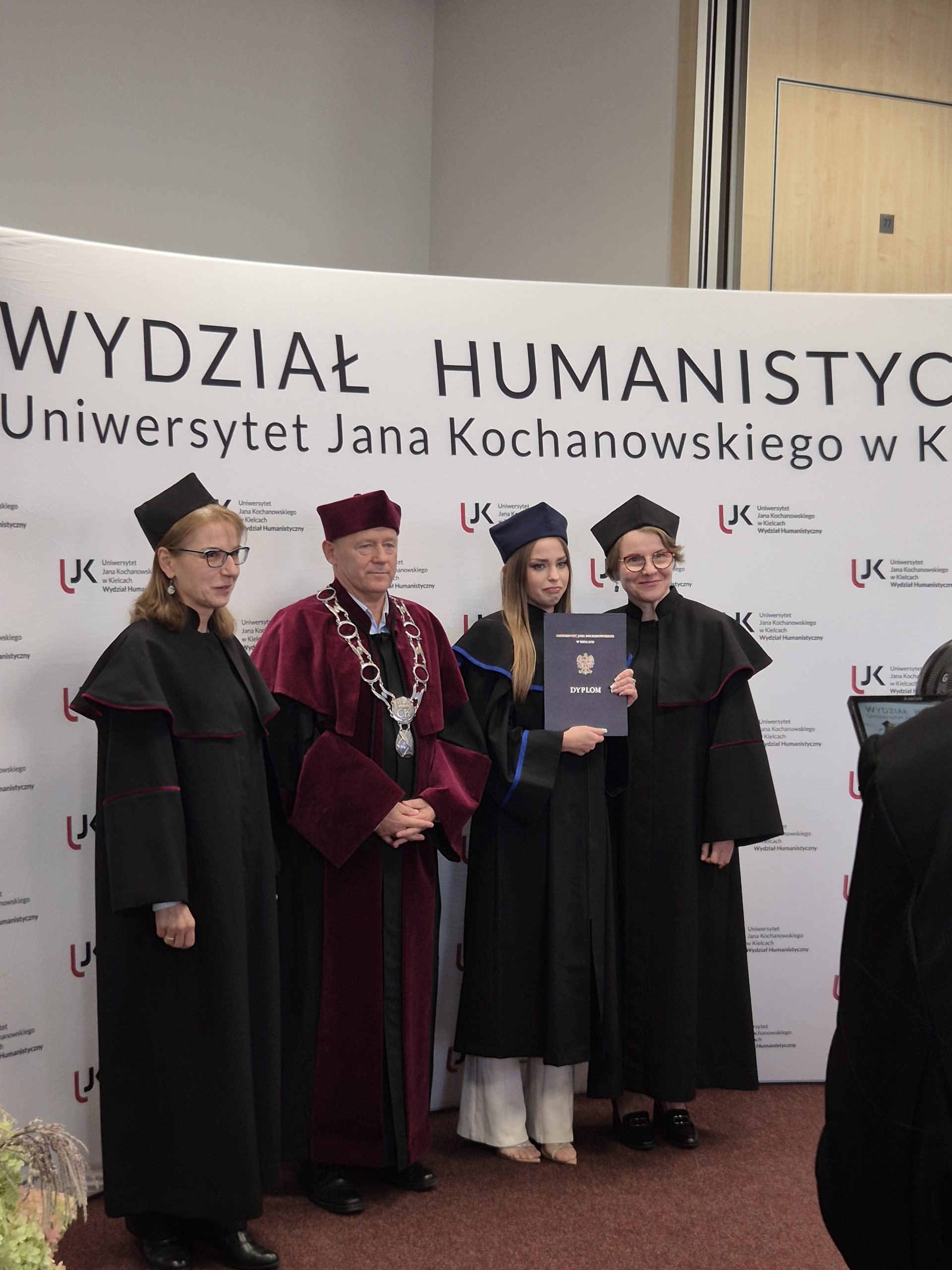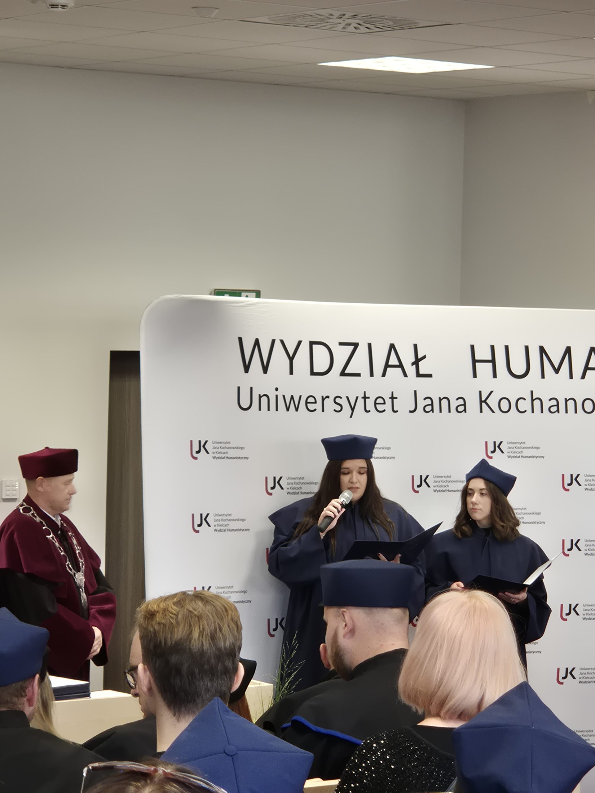 W piątkowe popołudnie Aula Miłosza wypełniła się po brzegi. Wydarzenie rozpoczęło się uroczystym odśpiewaniem Hymnu, a później nastąpiło przemówienie dziekana Wydziału Humanistycznego, dr. hab. Jerzego Gapysa, prof. UJK, który podkreślił, jak wielkiego wysiłku wymagała droga do uzyskania dyplomu oraz docenił wytrwałość i rozwój, który przeszedł każdy ze studentów. Wśród gości można było wyczuć dumę, wzruszenie, ale i radość z nowego początku.