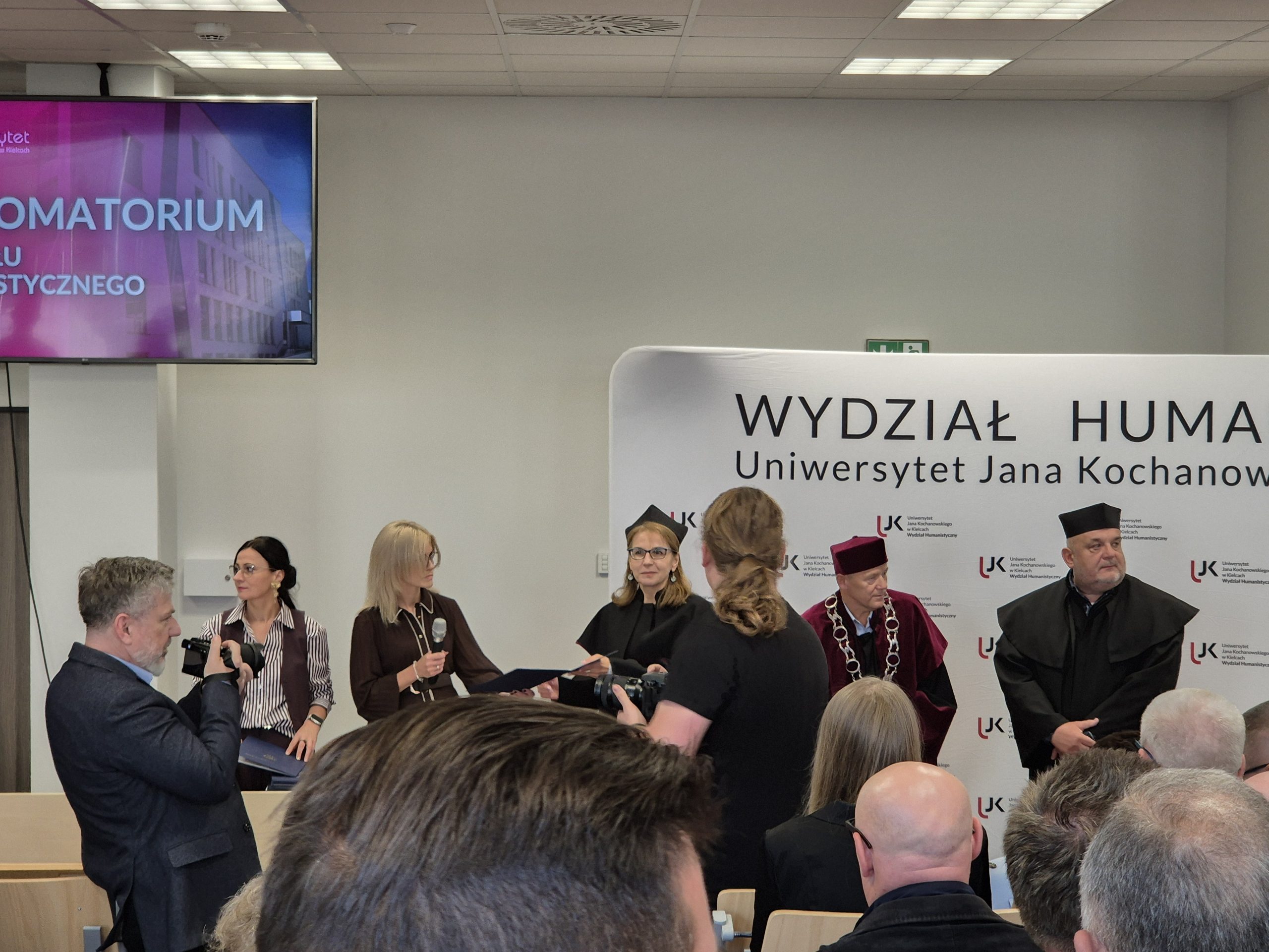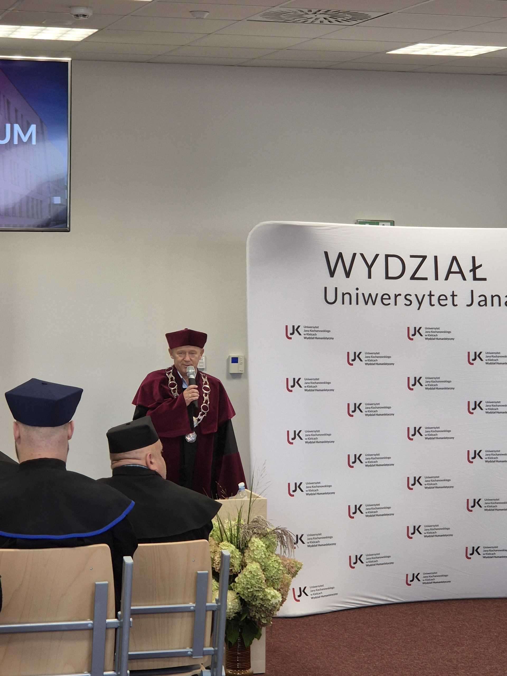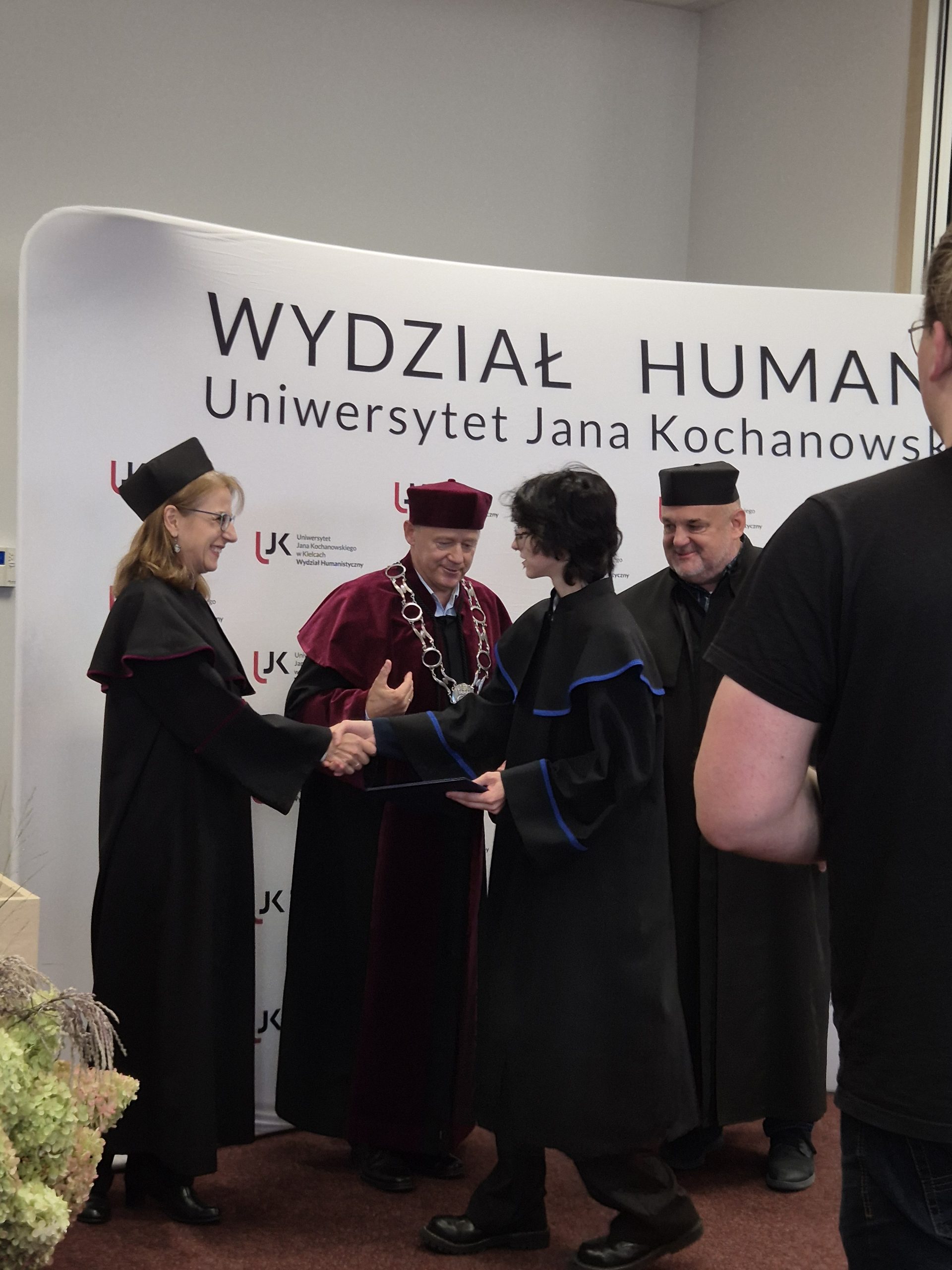 W piątkowe popołudnie Aula Miłosza wypełniła się po brzegi. Wydarzenie rozpoczęło się uroczystym odśpiewaniem Hymnu, a później nastąpiło przemówienie dziekana Wydziału Humanistycznego, dr. hab. Jerzego Gapysa, prof. UJK, który podkreślił, jak wielkiego wysiłku wymagała droga do uzyskania dyplomu oraz docenił wytrwałość i rozwój, który przeszedł każdy ze studentów. Wśród gości można było wyczuć dumę, wzruszenie, ale i radość z nowego początku.