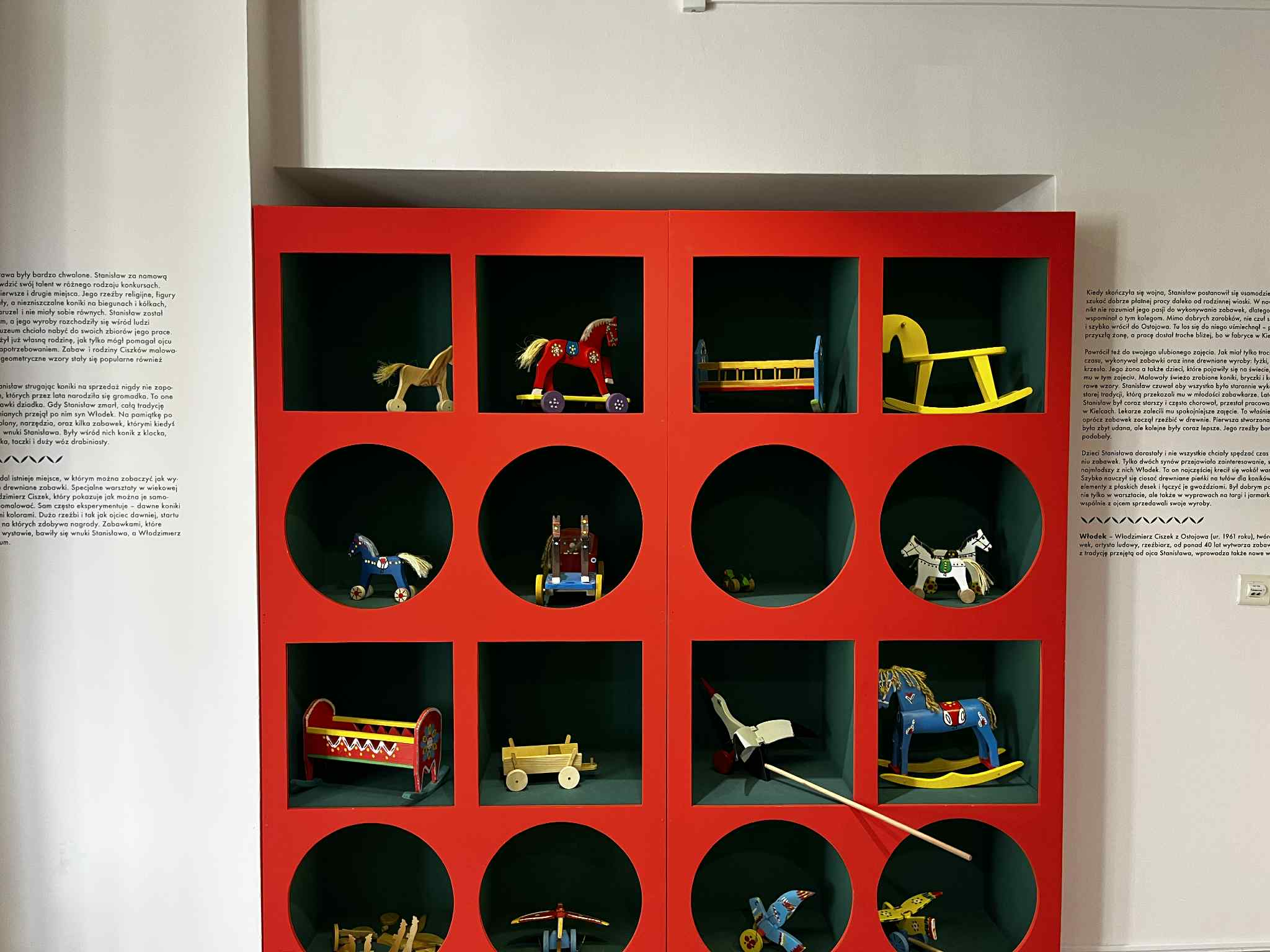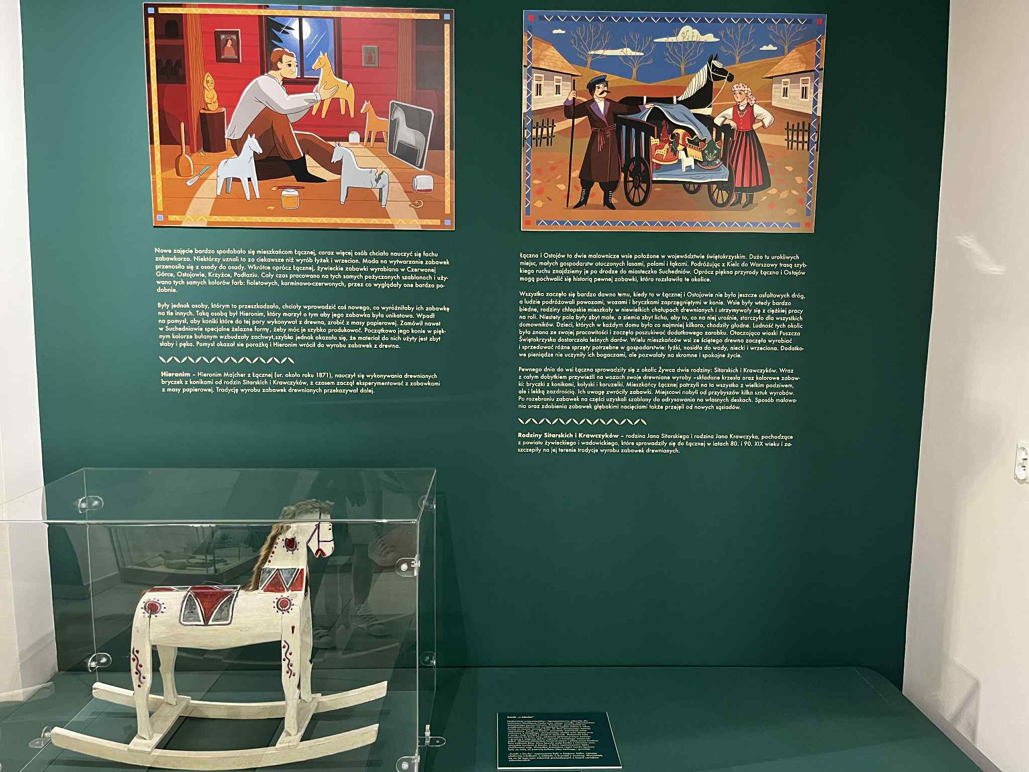 Wystawa „Nie tylko koniki z klocka – o zabawkach Stanisława Ciszka, które połączyły pokolenia” dostępna będzie do 5 grudnia. Przeniesie nas w okolice Ostojowa, gdzie poznamy miejscową tradycję zabawkarską oraz jej wpływ na twórczość i osobę Stanisława Ciszka będącego jednym z najwybitniejszych zabawkarzy naszego regionu. Oprócz 70 eksponatów autorstwa artysty, możliwe będzie prześledzenie jego losów dzięki ilustracjom wykonanym przez Agatę Piwińską oraz zanurzenie się w historię regionu świętokrzyskiego i jego kulturę.