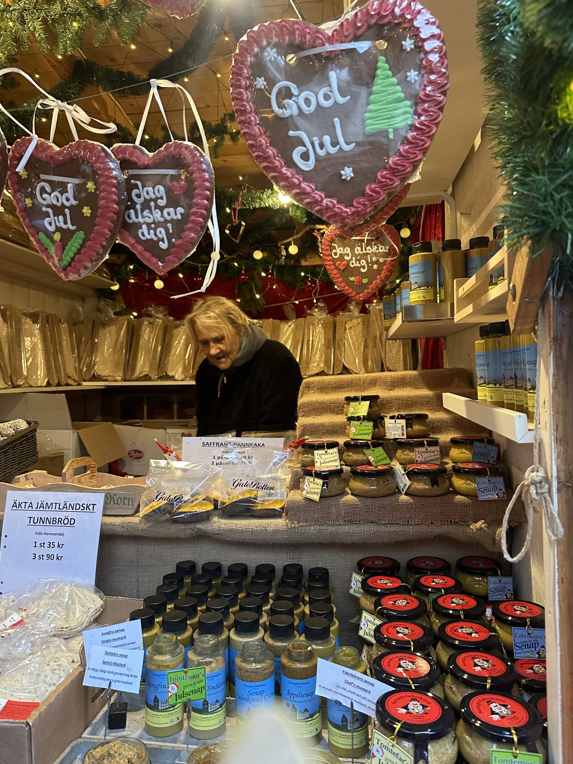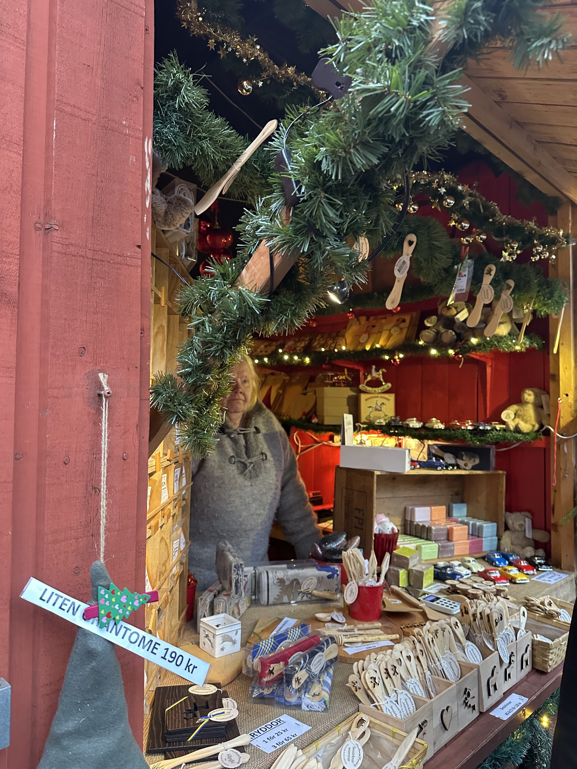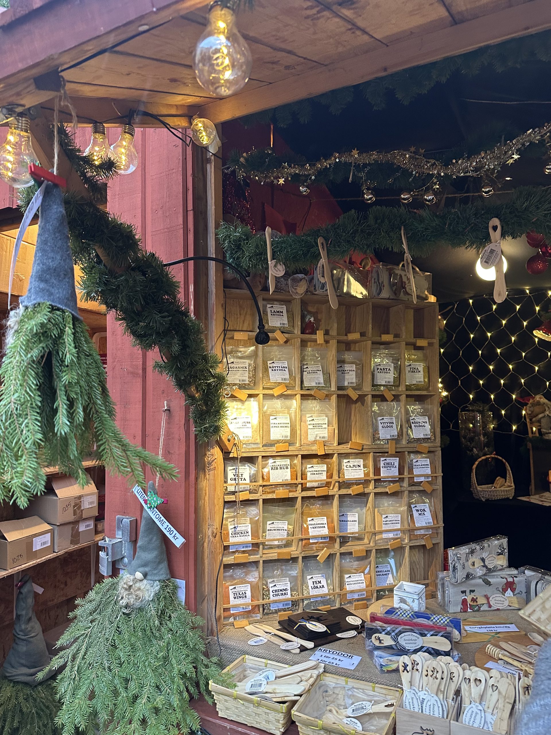 Liczne stragany udekorowane czerwonymi budkami i światełkami, oferują wiele atrakcji i nadają niepowtarzalną atmosferę. Na stoiskach można znaleźć ręcznie robione ozdoby, wełniane szaliki i czapki, drewniane koniki z Dalarna, które są symbolem szwedzkiego rzemiosła i wiele ceramicznych dodatków, rękodzieł inspirowanych skandynawskim minimalizmem.
