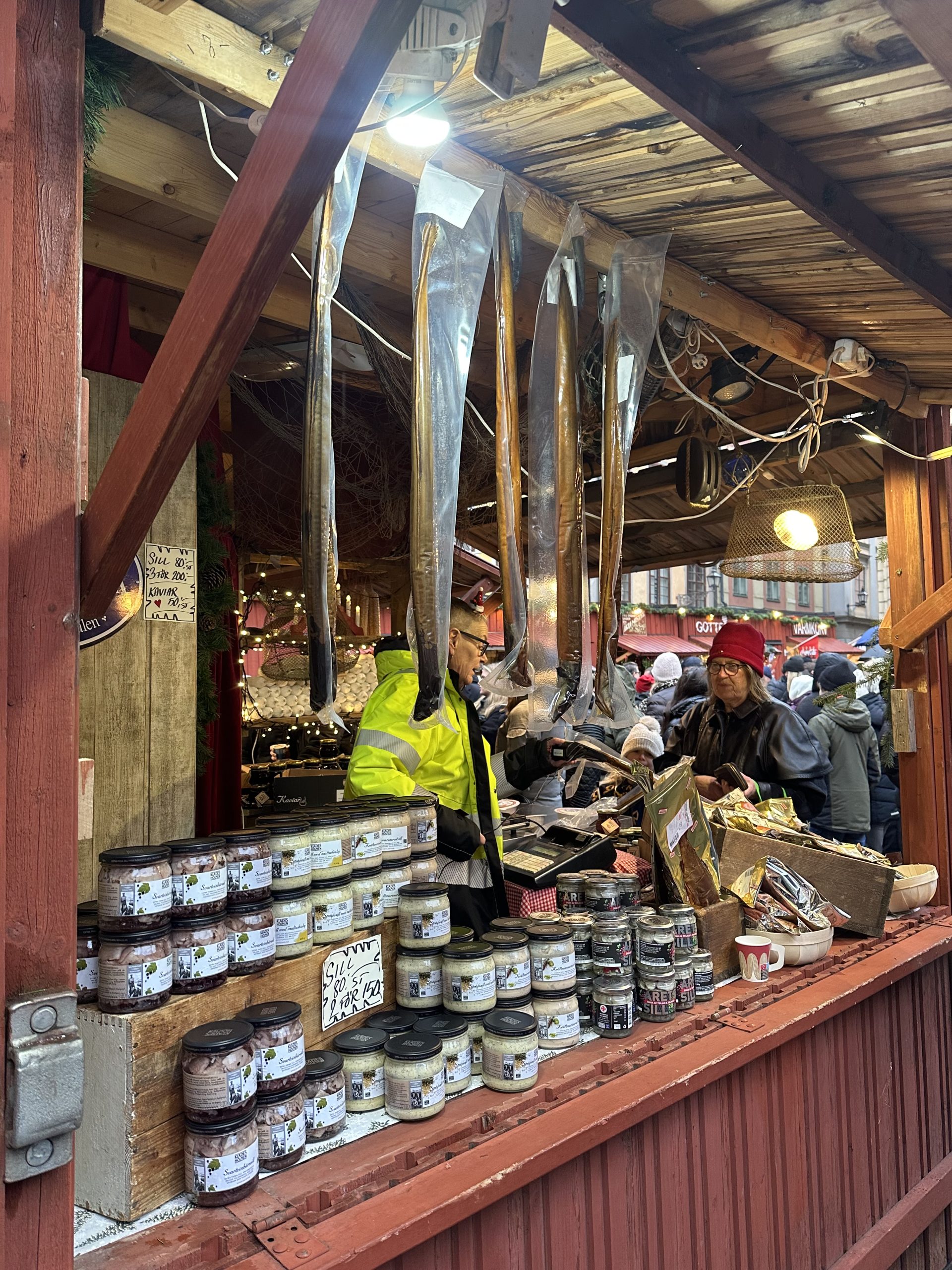 Dużą popularnością cieszą się również lokalne przysmaki takie jak: Glögg – szwedzkie grzane wino serwowane z migdałami i rodzynkami, Pepparkakor – aromatyczne pierniczki, Lussekatter – aromatyczne, szafranowe bułeczki. Nie brakuje również stoisk z rybami, wędlinami oraz z biżuterią. Niektóre stragany oferują degustację ich produktów. Na Gamla Stan można dostać się na pieszo z centrum Sztokholmu i przy okazji zaliczyć podróż w czasie będąc otoczonym klimatycznymi, wąskimi uliczkami. Jarmark jest czynny codziennie od końca listopada do 23 grudnia, a bilet wstępu jest darmowy. Sprawia to, że główny plac jest pełen turystów i mieszkańców, którzy chętnie robią sobie zdjęcia na tle pięknej architektury.