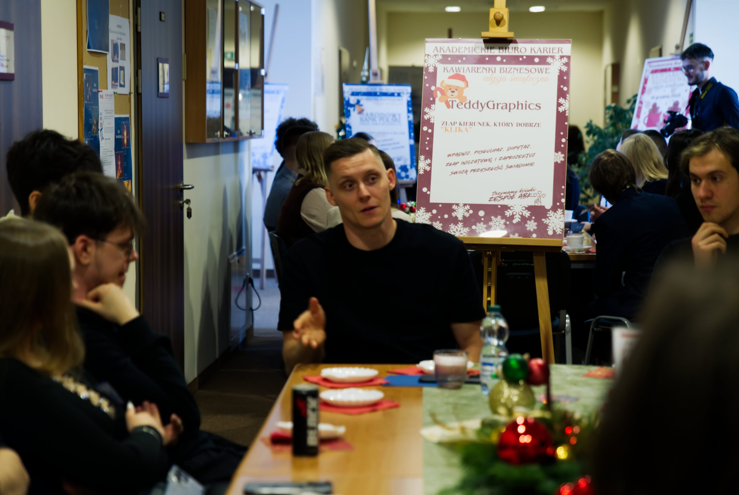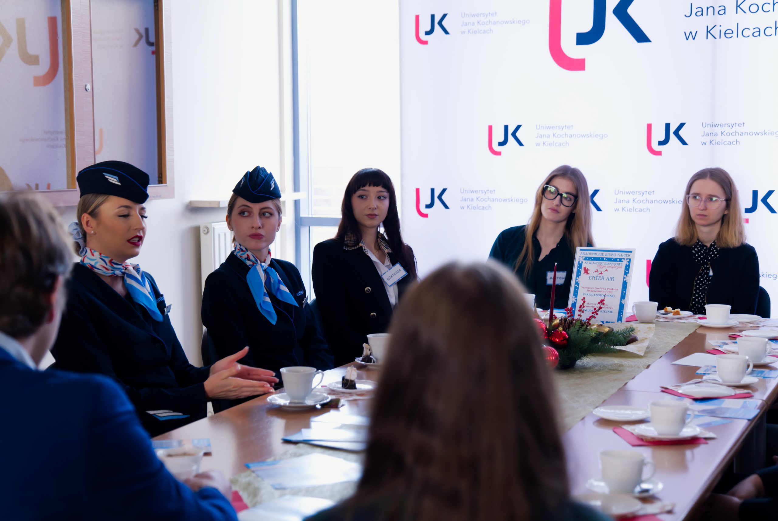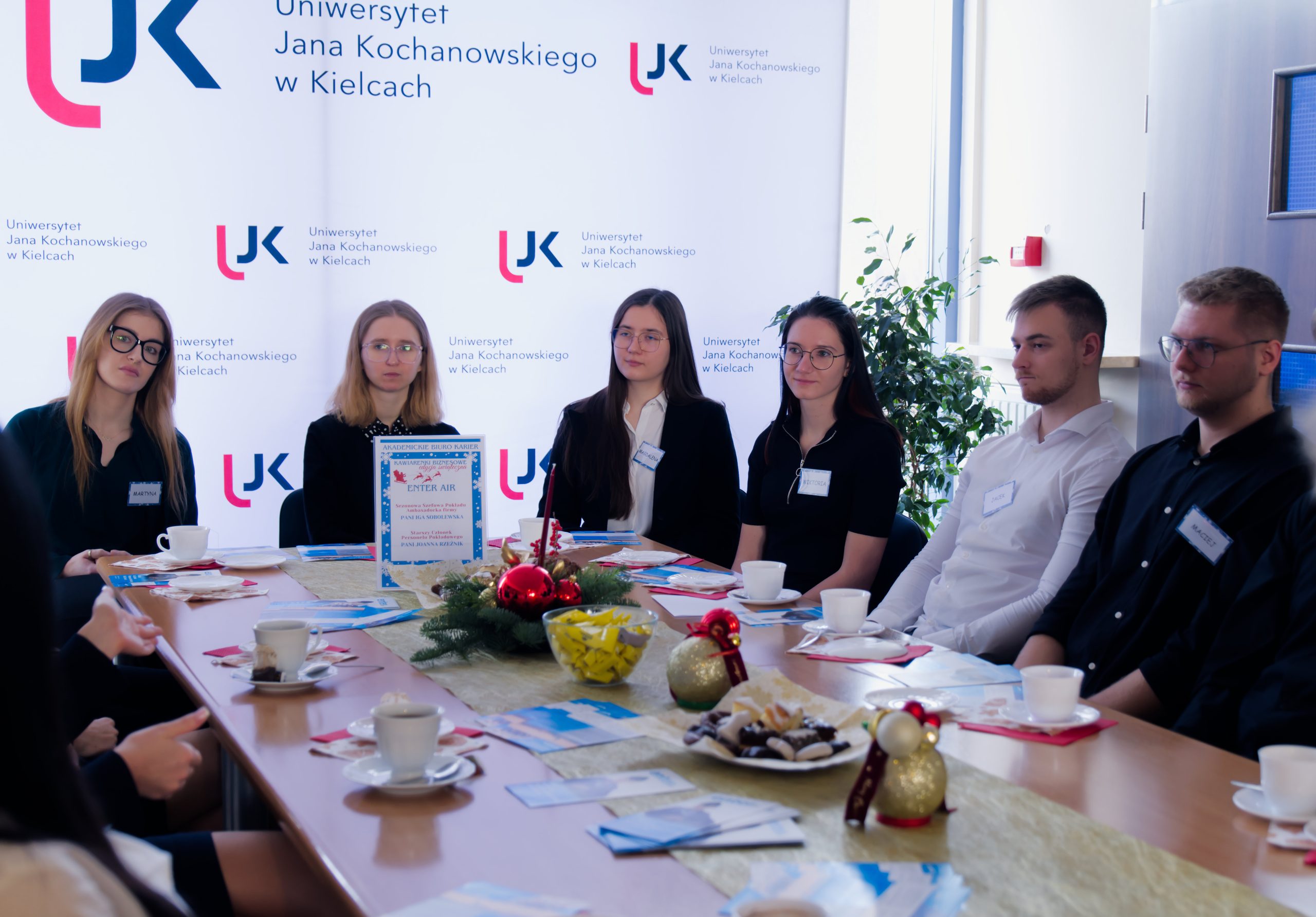 Była to już trzynasta edycja Kawiarenek Biznesowych, tym razem zorganizowana w świątecznym klimacie. W godzinach od 10.00 do 12.00 studenci kierunków takich jak grafika, design, chemia, lingwistyka stosowana, ekonomia czy filologia angielska, a także absolwenci UJK, mogli skorzystać z możliwości rozmów z pracodawcami i zdobycia praktycznej wiedzy na temat rynku pracy oraz warunków zatrudnienia w poszczególnych branżach.
