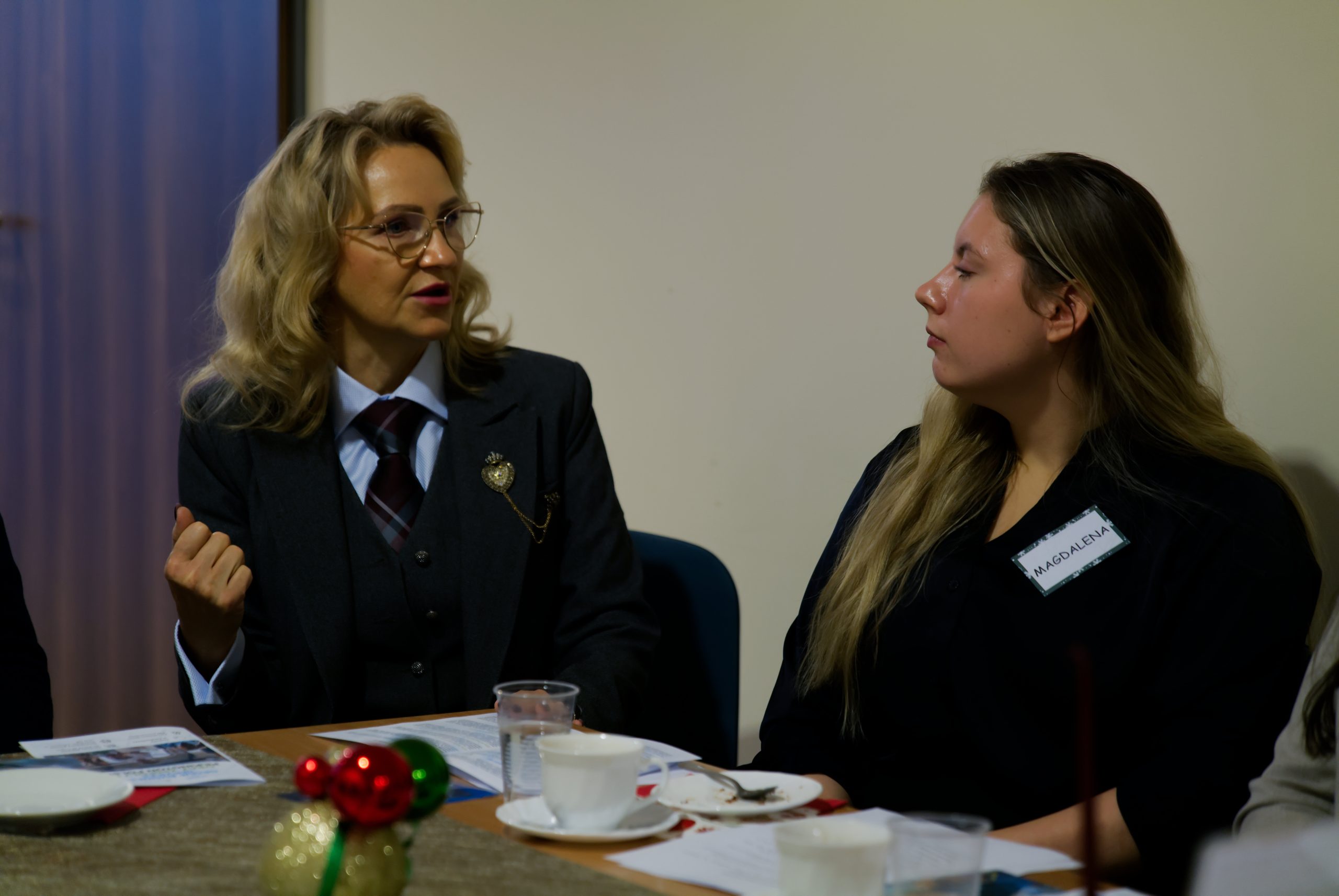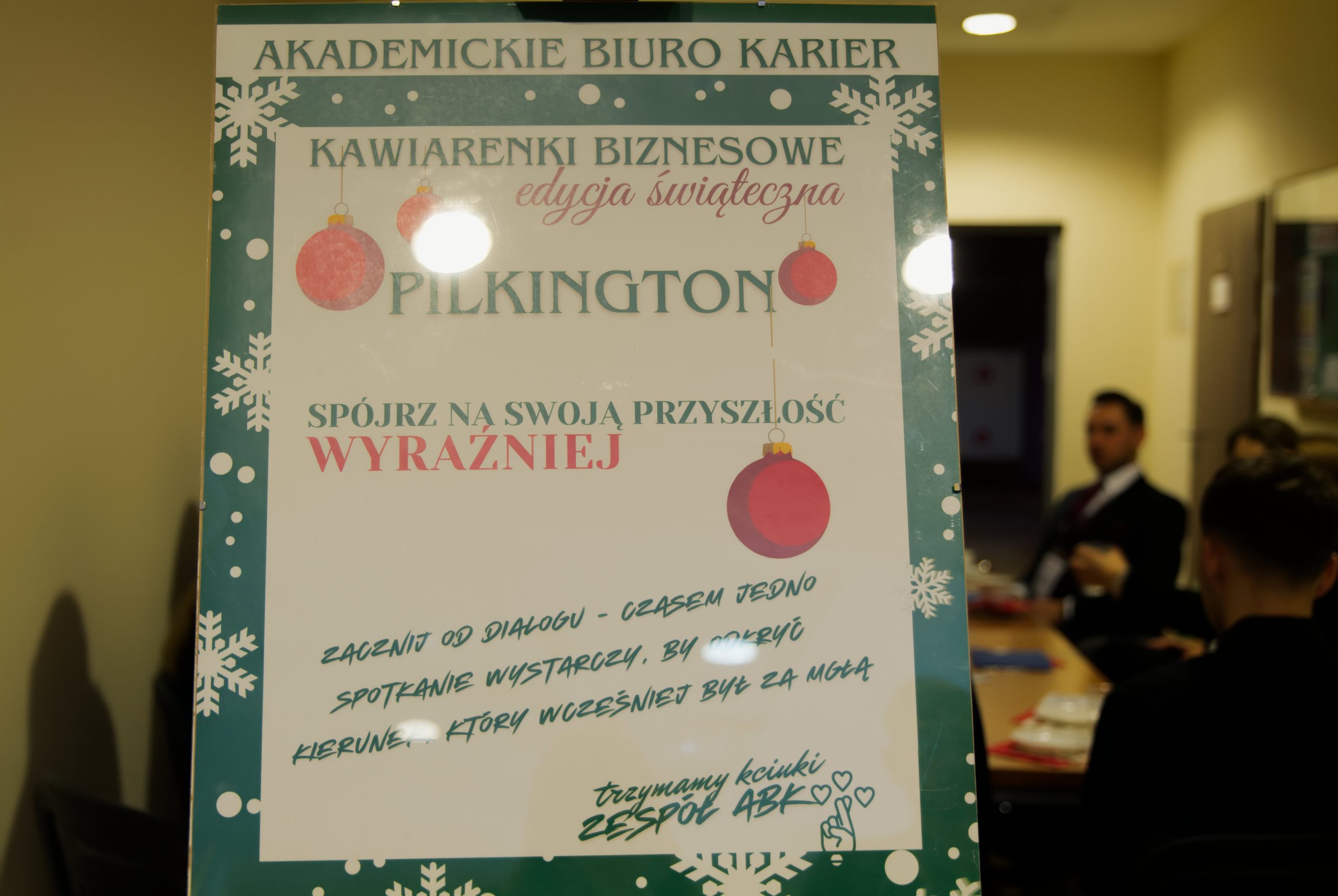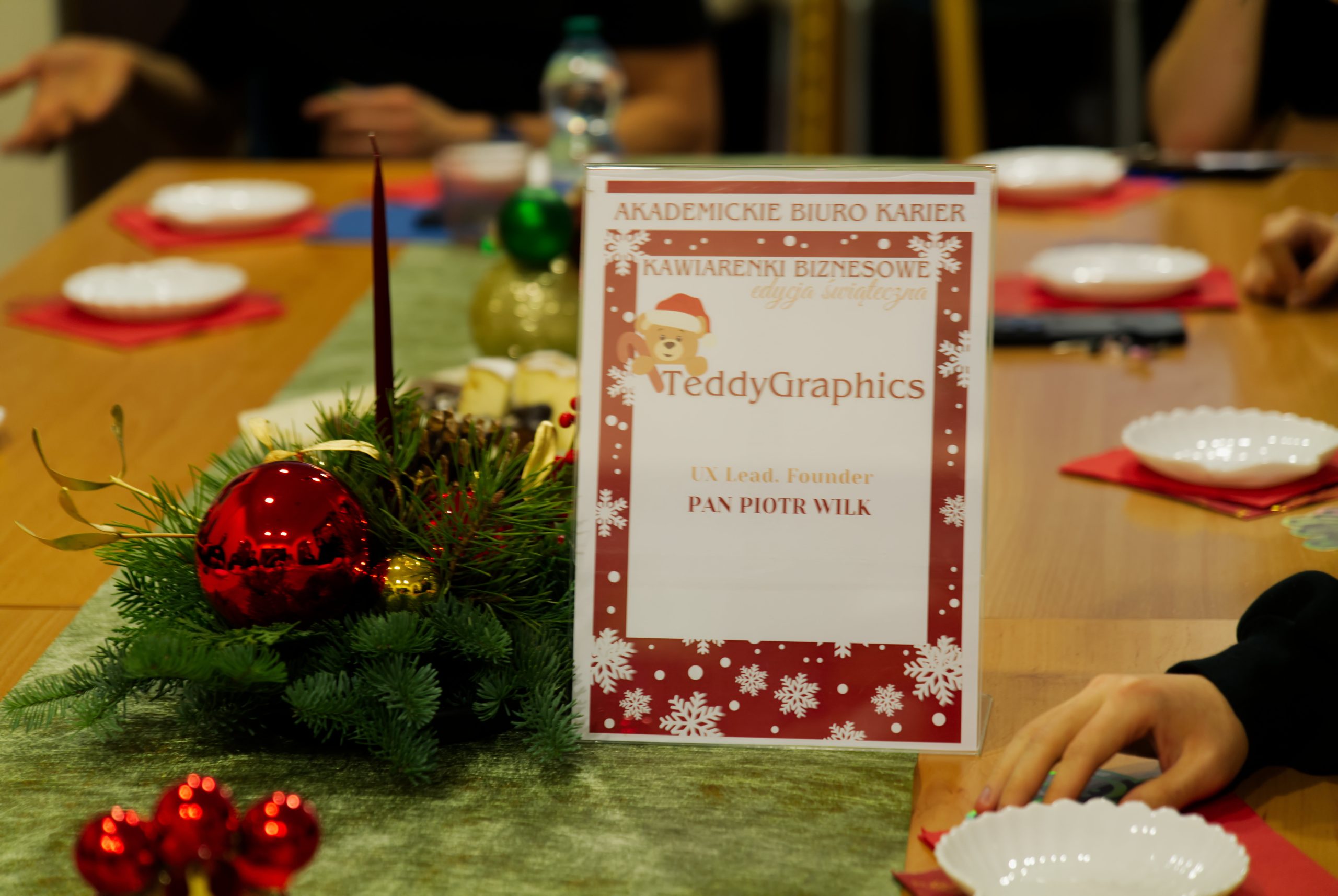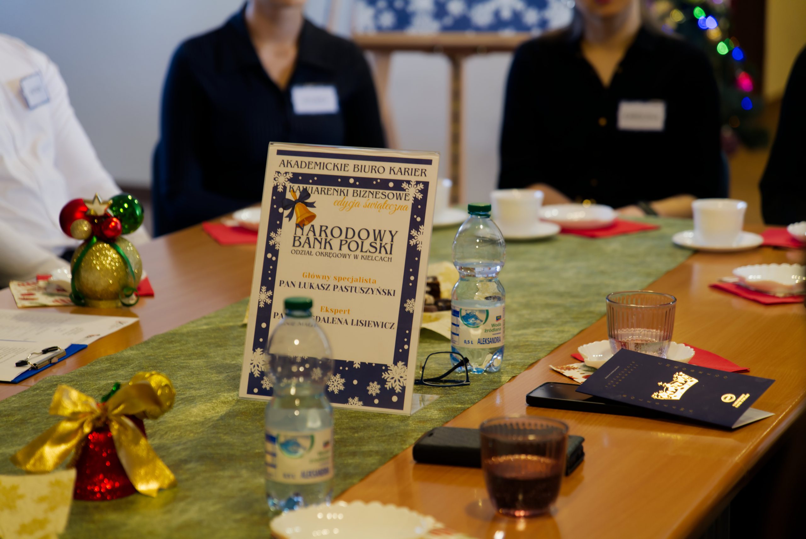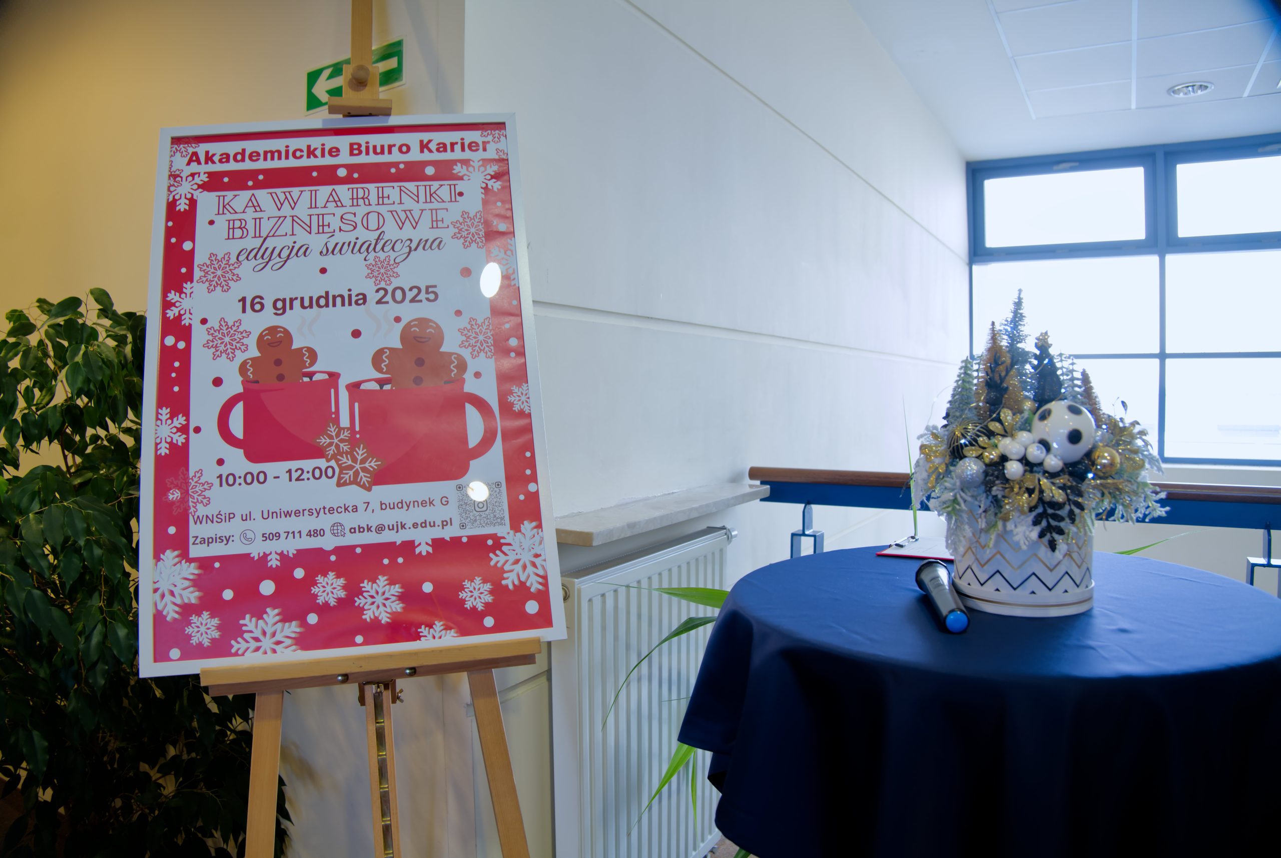 - Plakat wydarzenia „Kawiarenki Biznesowe” i stroik świąteczny
