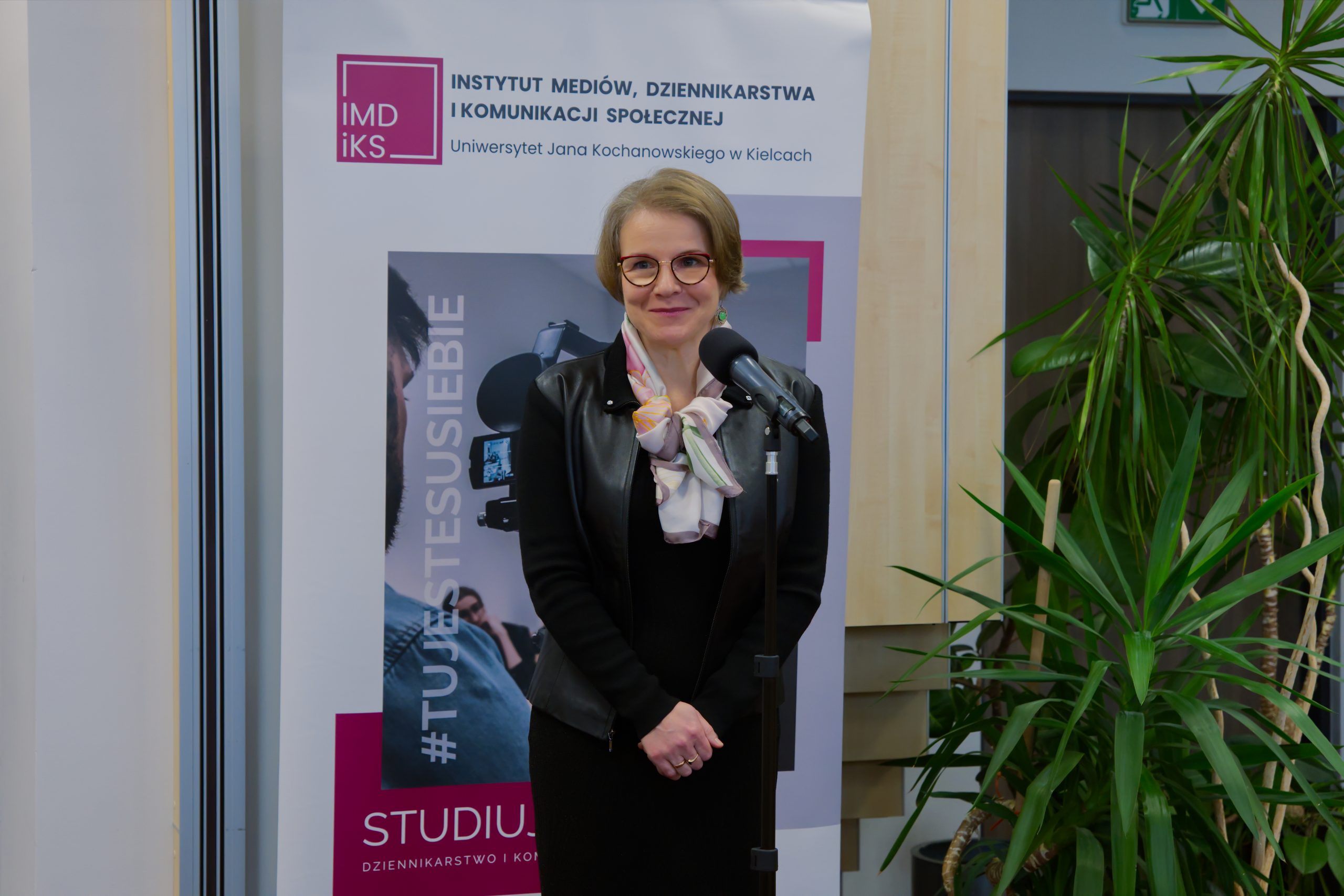 - prof. Olga Dąbrowska-Cendrowska stojąca przy mikrofonie