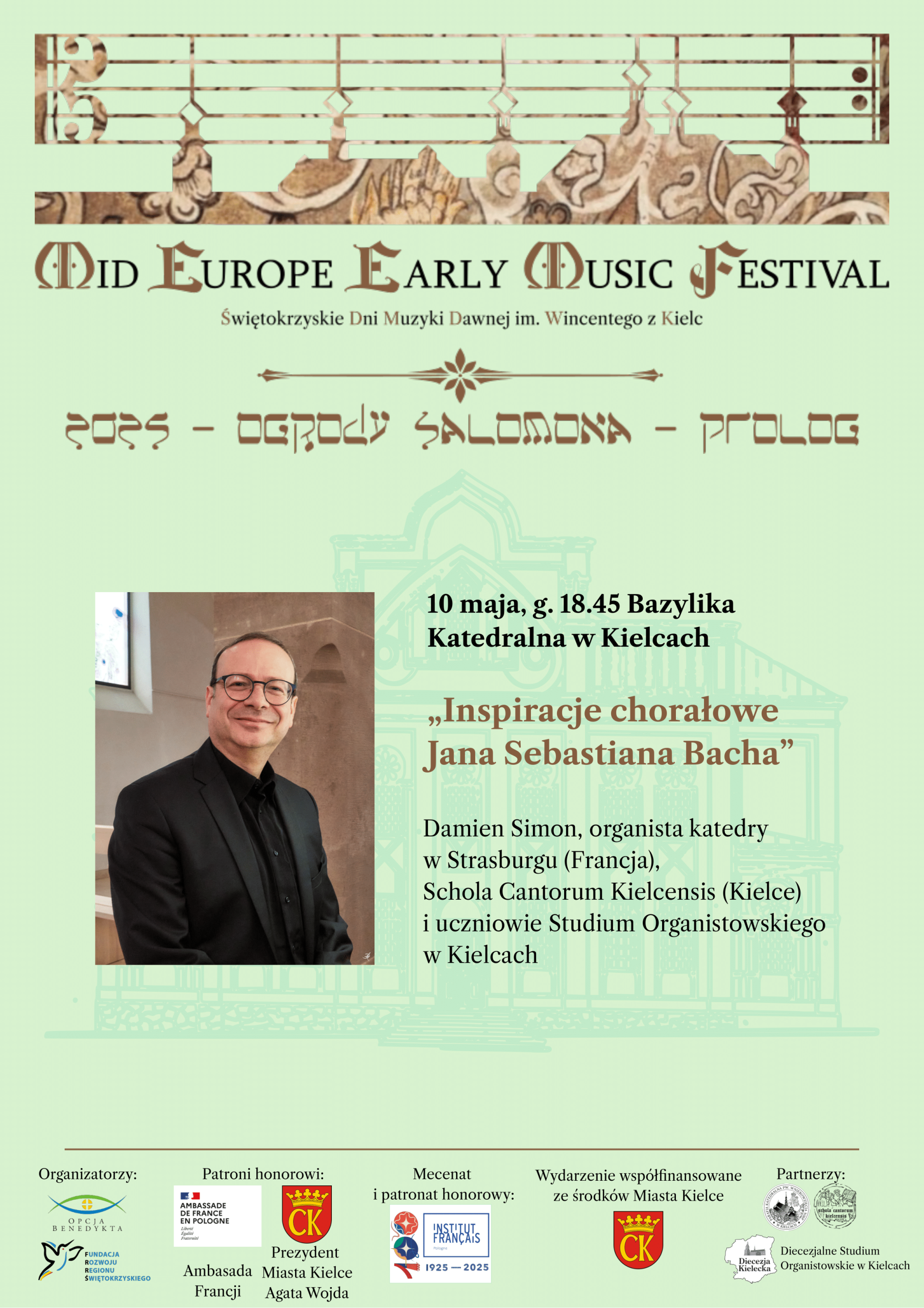 • Również tego samego dnia, o godzinie 18:45 w Bazylice Katedralnej w Kielcach rozpocznie się program „Od psalmu do chorału” z udziałem Damiena Simona, organisty katedry w Strasbourgu, Scholi Cantorum Kielcensis i uczniów Studium Organistowskiego w Kielcach.