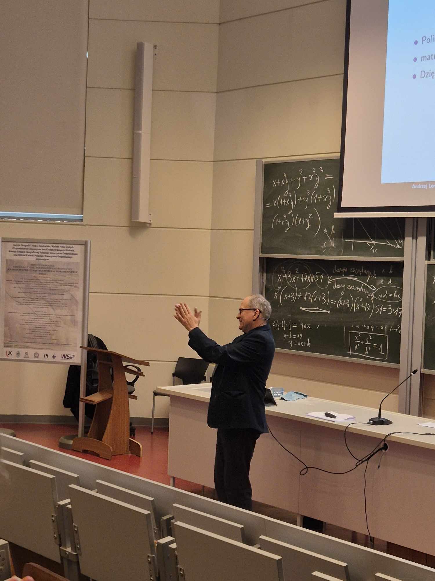 Doktor przybliżył także genezę słowa algebra, które pochodzi z arabskiego słowa al-dżabr, oznaczającego połączenie. Przybliżona została teoria, mówiąca o tym, że geometria pochodzi od odczuwania przestrzeni, a algebra pochodzi od odczuwania czasu.