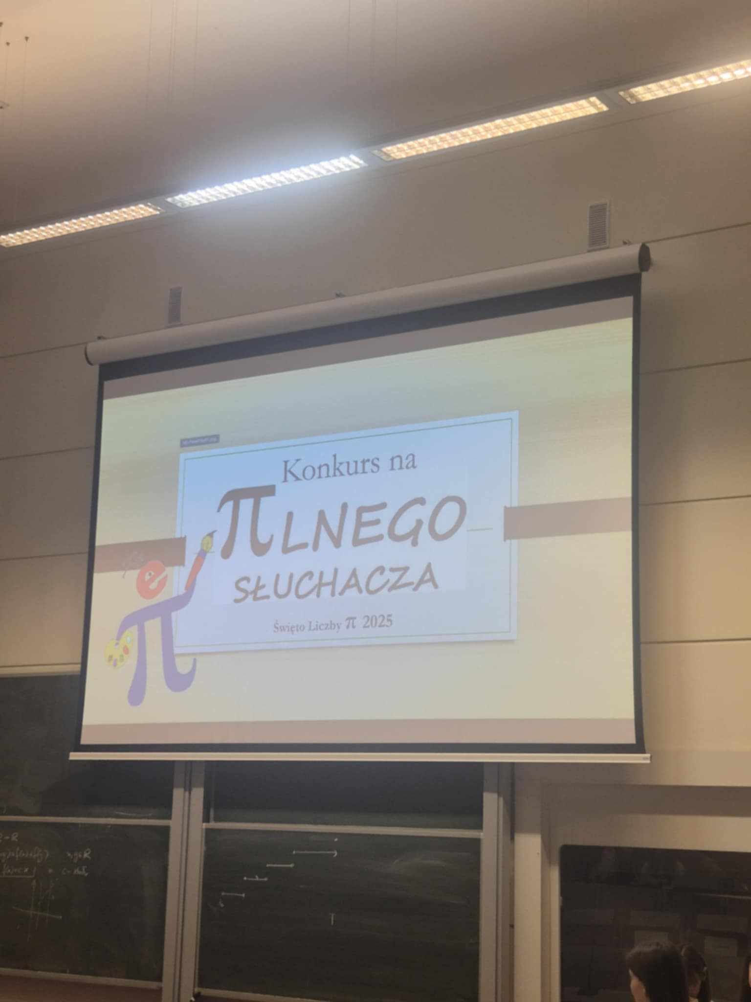 Na koniec dzisiejszych obchodów odbył się konkurs, którego celem było wyłonienie najpilniejszego słuchacza. Początkowo zadano dziesięć pytań, np. Na ile małych tesseraaktów trzeba podzielić tesserakt w czterowymiarowej grze w kółko i krzyżyk? Osoby, które udzieliły poprawnych odpowiedzi, przeszły do finału by walczyć o tytuł πlnego słuchacza. Każdy z dziesięciu uczestników wykazał się ogromną wiedzą, która udowodniła ogromne zainteresowanie wszystkich zgromadzonych.
